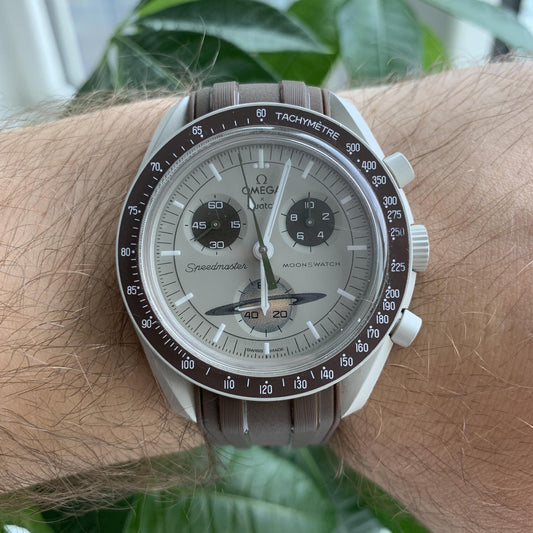 Bracelet Moonswatch silicone - Blanc & Marron